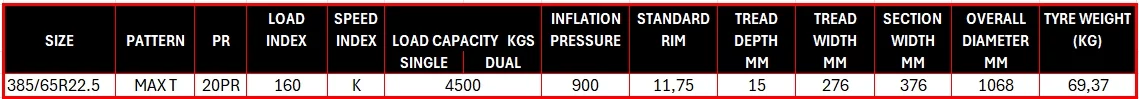 Der NIMBA 385/65R22.5 MAX T ist ein universell einsetzbarer Reifen für Lenk-, Nachlauf- und Trailerachsen. Sein breites Profil sorgt für hohe Fahrstabilität, gleichmäßigen Abrieb und für zuverlässige Performance - selbst unter voller Belastung.